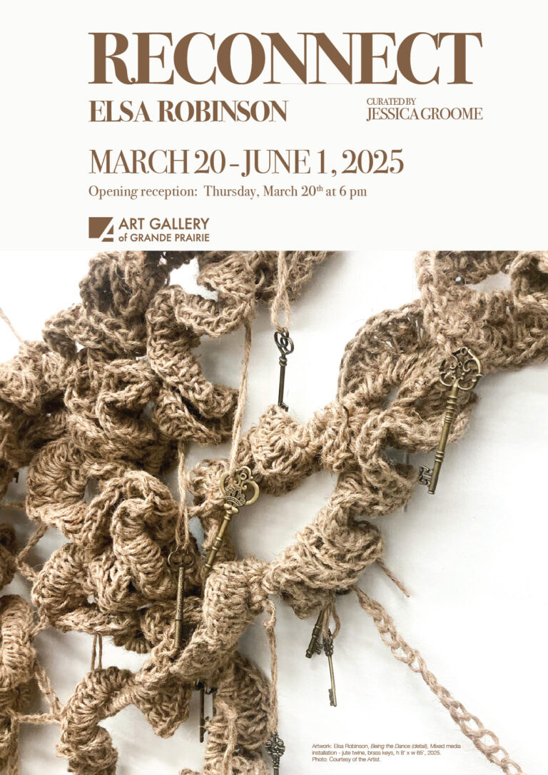 Featured Artwork: Elsa Robinson, Being the Dance (detail) , 8’ x 65’, Mixed media installation – jute twine, brass keys, 2025