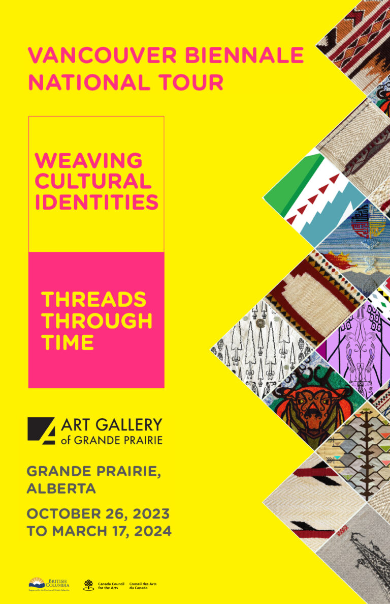 The Art Gallery of Grande Prairie is pleased to present two travelling exhibitions from the Vancouver Biennale Threads Through Time and Weaving Cultural Identities. The exhibitions feature weaving as a central practice and an important cultural life-force of Muslim and Indigenous communities, transcending time, space and language.
