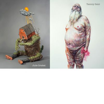 The exhibition Unfamiliar Selves presents recent painted sculptures by Jude Griebel and a series of watercolor paintings by Tammy Salzl. Both artists explore themes of psychology and identity, played out upon the body through the use of transformation and metaphor. In their work, the transforming body is used as a tactic to explore the artist’s relationships to the social and natural world. A shared Prairie background and mutual interests in narrative and affect come together in a detailed sense of storytelling through their chosen media. Additional autobiographical influences, ranging from the agricultural to the domestic, are elaborated through art historical and mythological references. Through the layering of factual experience and imagined scenarios, the work in Unfamiliar Selves translates dramatic moments of self-awareness and realization.