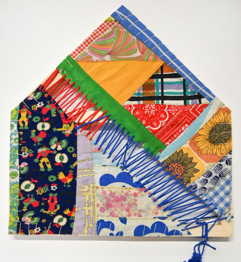 My name is Jordie Isaac, I am a visual artist based in Grande Prairie, Alberta. I have roots in the local Mennonite community and my most recent artistic explorations are based on the complicated emotional process of leaving my close-knit community as an adult. Themes of self-identity, family history, trauma and grief are at the core of my practice. My idea is based on the dichotomy of the severance of culture and community and the preservation of the deep-running ties that bind me to my heritage. I am searching for answers of how one deals with the separation and loss of cultural ties while longing for connection to my past. In these pieces I use culturally traditional materials and found objects, collaging fabric and string to signify self-identity and growth. I express these ideas through abstract expressionism in the inspiration of Cy Twombly, collage of textiles inspired by Jill Nuckles, and creation of quilts in the tradition of my ancestry.